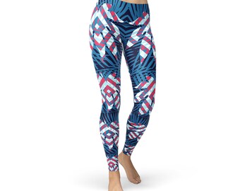 Tropischen Leggings Fur Frauen Navy Blau Bunte Leggings W Etsy De
